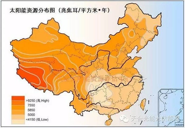 我國屬太陽能資源豐富的國家之一,全國總面積2/3以上地區(qū)年日照時(shí)數(shù)大于2000小時(shí)。