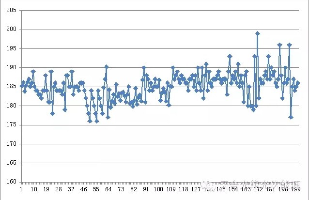 對切割后硅片取樣片,檢測其厚度值,中心點平均厚度值為185.28μm,樣片厚度數(shù)據(jù)如下圖: