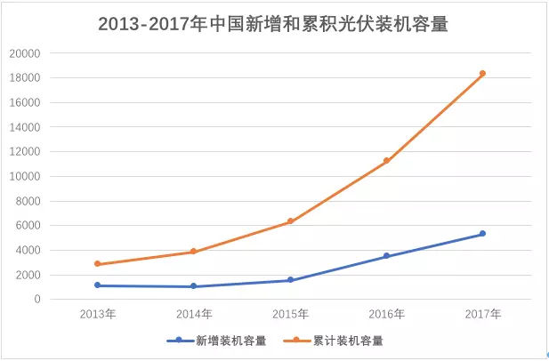 近年來,全球光伏新增裝機(jī)快速增長,2017年,新增裝機(jī)容量達(dá)到102GW,同比增長超過37%,新增裝機(jī)容量大于燃煤、天然氣和核電凈增裝機(jī)的總和,累計(jì)容量達(dá)到405GW。2017年,除中國外,主要增長的市場有日本的7GW、美國的10.6GW、歐洲的8.61GW和印度的9.6GW。