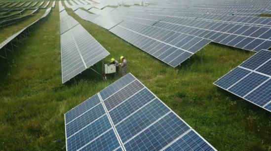 藍(lán)天白云下,遼闊的大草原上,大片大片的光伏板,微微昂頭,在高原陽光的照射下,正源源不斷地釋放著綠色能源。
