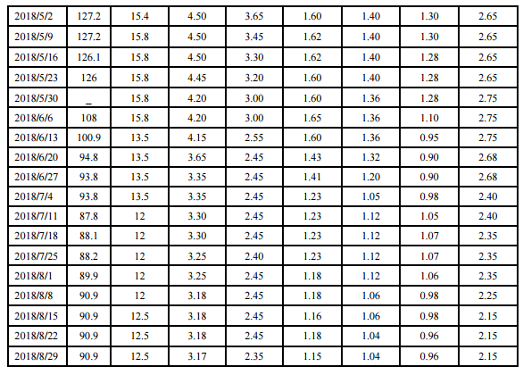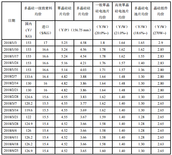 附表:2018年多晶硅光伏產(chǎn)業(yè)鏈各產(chǎn)品價(jià)格