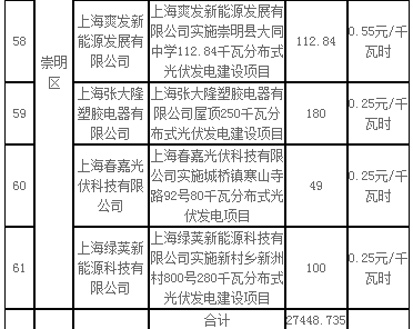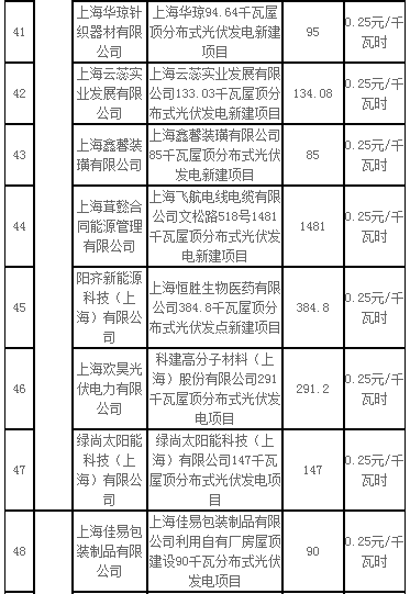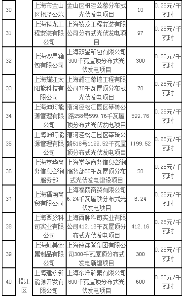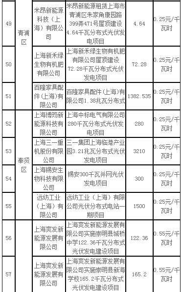 1、2017年第一批上海市可再生能源和新能源專項資金獎勵項目表(光伏項目)