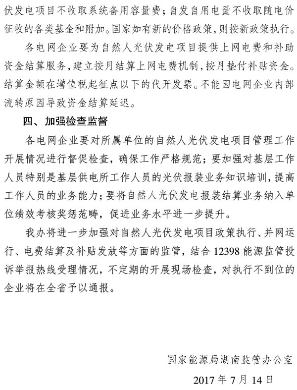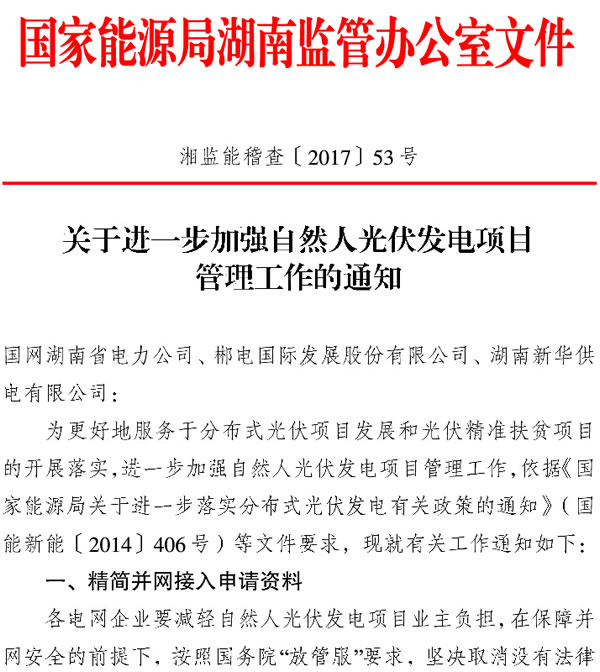 湖南能監(jiān)辦關于進一步加強自然人光伏發(fā)電項目管理工作的通知
