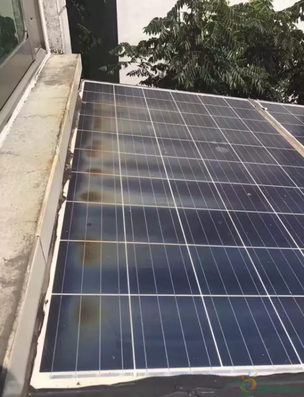 近日,記者收到一組照片。顯示,國(guó)內(nèi)某家庭項(xiàng)目的組件出現(xiàn)大面積熱斑效應(yīng)。什么是熱斑效應(yīng)?據(jù)專(zhuān)家介紹熱斑效應(yīng)是在一定條件下,一串聯(lián)支路中被遮蔽的太陽(yáng)電池組件,將被當(dāng)作負(fù)載消耗其他有光照的太陽(yáng)電池組件