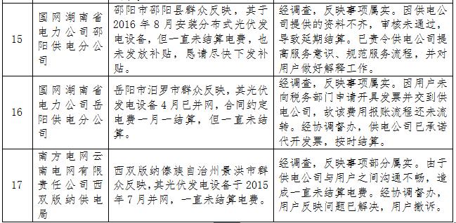 新能源和可再生能源行業(yè)主要反映了部分地區(qū)分布式光伏發(fā)電項(xiàng)目費(fèi)用結(jié)算不及時(shí)等問題,共17件,詳情如下: