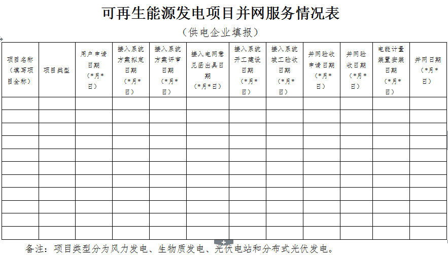附加2:可再生能源發(fā)電項(xiàng)目并網(wǎng)服務(wù)情況表