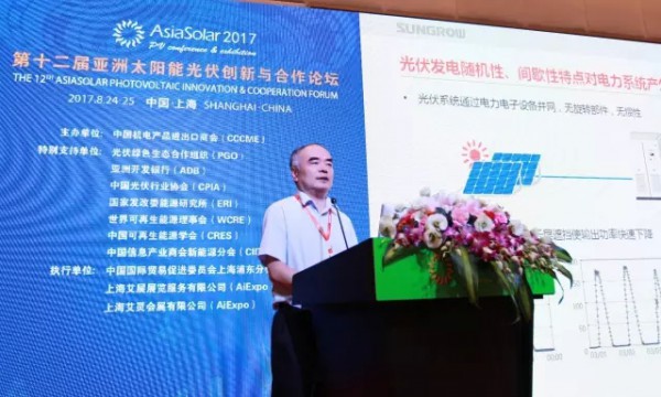 此次會(huì)議上,曹仁賢獲頒“2017亞洲光伏創(chuàng)新杰出貢獻(xiàn)人物獎(jiǎng)”,并發(fā)表了《光伏發(fā)電與儲(chǔ)能深度融合及展望》主題演講。