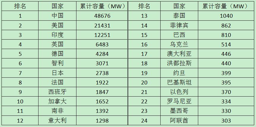 上半年公用事業(yè)規(guī)模太陽能累計(jì)容量全球排名