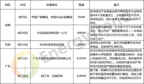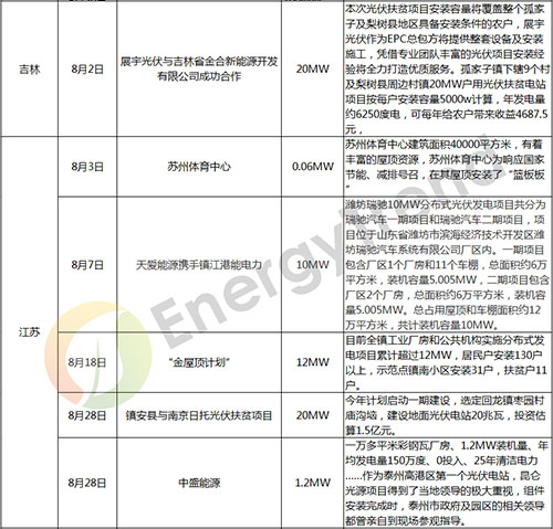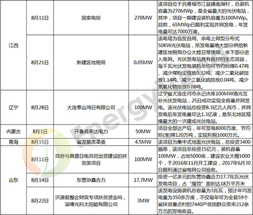 盡管上半年的光伏新增裝機有相當(dāng)一部分是為了避免7月1日開始的電價下調(diào)而進行的“搶裝”,但與16年上半年不同的是,24GW的新增量中有超過7GW是分布式光伏裝機(16年同期只有2GW)。下半年已過去兩月,集邦咨詢新能源研究中心EnergyTrend搜集整理了今年8月全國各省并網(wǎng)的光伏項目,以供參詳。(若有缺漏,歡迎聯(lián)系指正。)