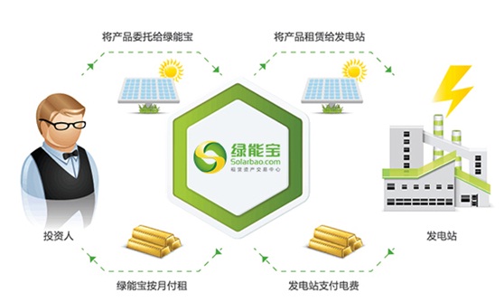 投資人的整個(gè)投資過程為:投資人先在綠能寶平臺(tái)投入資金購(gòu)買光伏電池板,然后綠能寶將投資人購(gòu)買的光伏電池板租賃給太陽(yáng)能發(fā)電站,而電站并網(wǎng)發(fā)電產(chǎn)生的發(fā)電效益將回籠給綠能寶,最后綠能寶再給投資人按月付租。