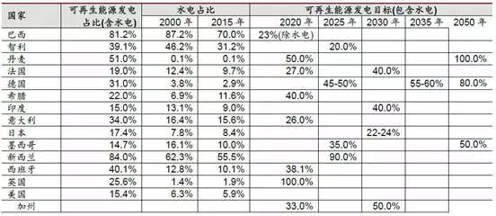 可再生能源將是大勢(shì)所趨:隨著全球氣候的變暖以及能源形勢(shì)的嚴(yán)峻,全球越來(lái)越多的國(guó)家倡導(dǎo)可再生能源的發(fā)展和使用,大部分國(guó)家都為可再生能源發(fā)電占比進(jìn)行中長(zhǎng)期的規(guī)劃,部分國(guó)家已經(jīng)提前完成2020年的規(guī)劃(意大利、丹麥等),不少國(guó)家計(jì)劃到2050年的可再生能源發(fā)電(包含水電)占比要達(dá)到50%以上。