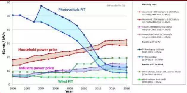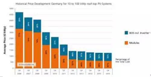 同時(shí)我們看到,隨著光伏產(chǎn)業(yè)度電成本的下降,海外的市場(chǎng)需求逐漸放量,存在著巨大的市場(chǎng)潛力和機(jī)會(huì)。今天兔子君就為大家列舉下德國(guó)光伏的降價(jià)歷史,并簡(jiǎn)要闡釋海外光伏電站的未來(lái)市場(chǎng)空間。