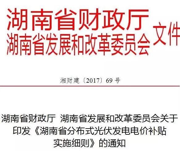 原標(biāo)題:湖南省財(cái)政廳湖南省發(fā)展和改革委員會(huì)關(guān)于印發(fā)《湖南省分布式光伏發(fā)電電價(jià)補(bǔ)貼實(shí)施細(xì)則》的通知