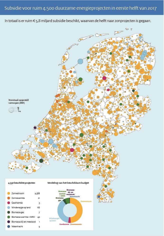 SDE+方案政府管理部門RVO通過此輪招標共分配了3212兆瓦的可再生能源產能,其中太陽能占據了73%。其余為大型風能(643兆瓦)、生物質發(fā)電、地熱及其他小型可再生能源技術。