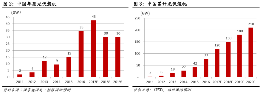 盡管對于分布式預(yù)期有所冷卻,招銀國際對于未來光伏裝機(jī)需求保持樂觀,基于對未來數(shù)年中國光伏裝機(jī)將維持穩(wěn)定的判斷,以及新興市場需求將起速增長。招銀國際將2017年中國新增光伏裝機(jī)量自32吉瓦上調(diào)32.7%至43吉瓦,并預(yù)測2018,2019年光伏裝機(jī)穩(wěn)定高于30吉瓦水平。