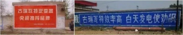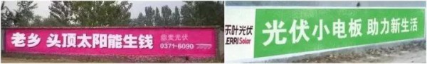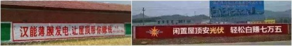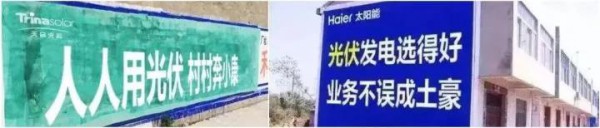 當年太陽能熱水器躥紅農(nóng)村市場,打響”農(nóng)村包圍城市“的市場壯舉,其相關(guān)企業(yè)大范圍、密集刷墻的影響力不容小覷!再來看看光伏企業(yè)目前刷了多少廣告: