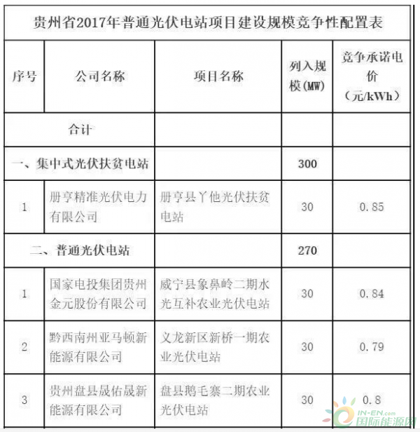 貴州2017年270兆瓦光伏電站項(xiàng)目分配方案