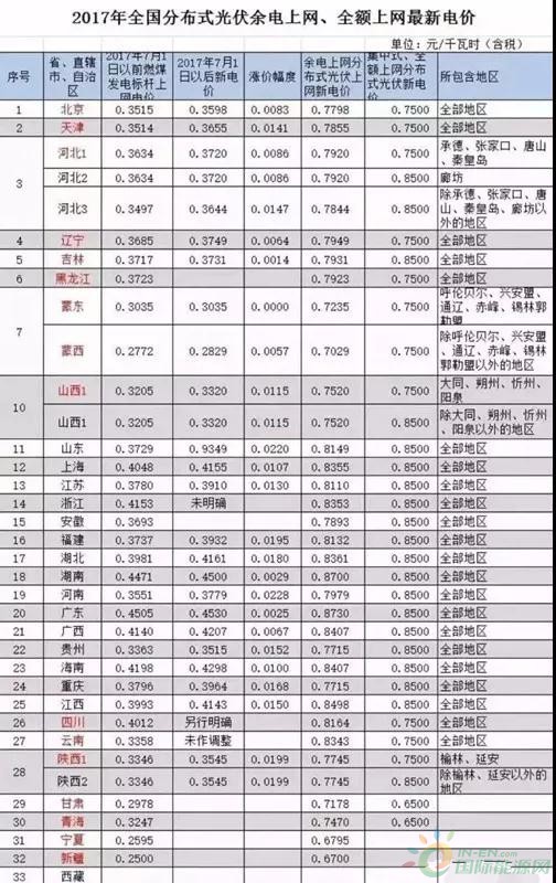 2017年下半年,我國(guó)各省市發(fā)改委相繼公布了本地的最新燃煤機(jī)組標(biāo)桿上網(wǎng)電價(jià)。隨之,我國(guó)各省市分布式光伏余量上網(wǎng)電價(jià)也有了新變化。