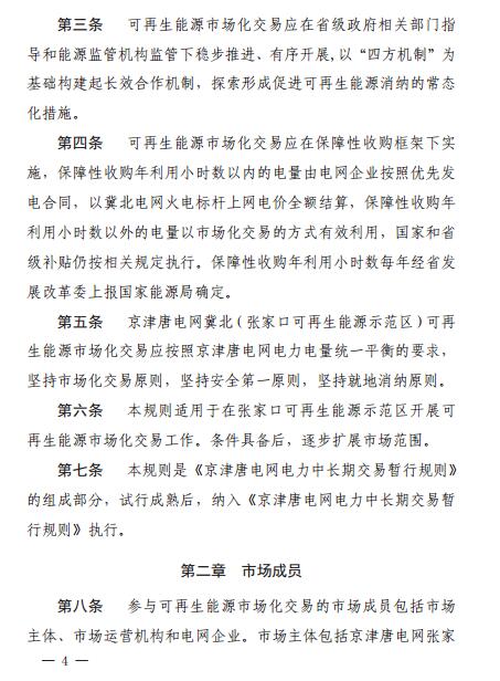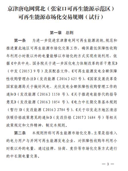 河北發(fā)改委:京津唐電網(wǎng)冀北(張家口可再生能源示范區(qū))可再生能源市場(chǎng)化交易規(guī)則