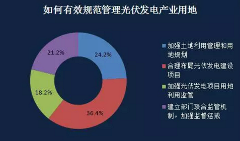 此次調(diào)查中,占受訪者比例最高的為合理布局光伏發(fā)電建設(shè)項(xiàng)目,為36.4%。有受訪者表示,在光伏電站中變電站及運(yùn)行管理中心、集電線路、場內(nèi)道路等光伏發(fā)電建設(shè)項(xiàng)目規(guī)劃時(shí),要優(yōu)先考慮可以使用未利用的土地,有效避開永久基本農(nóng)田等非建設(shè)用地。