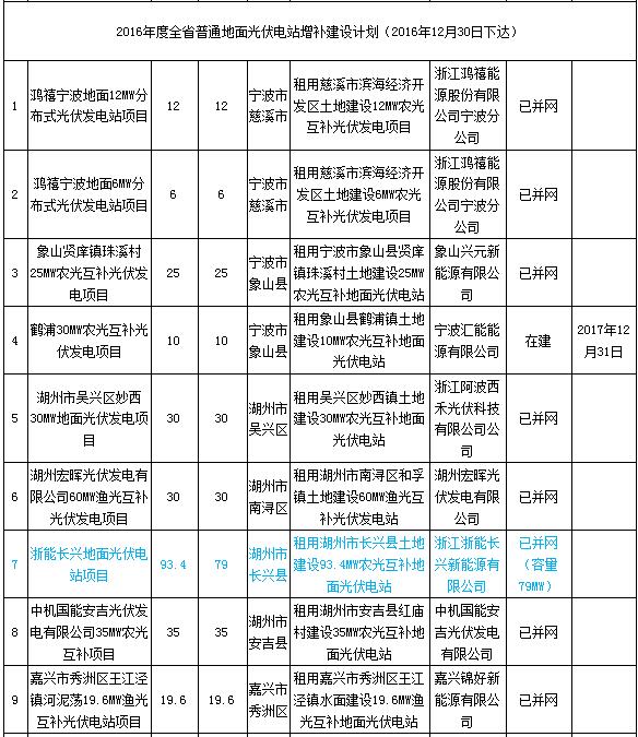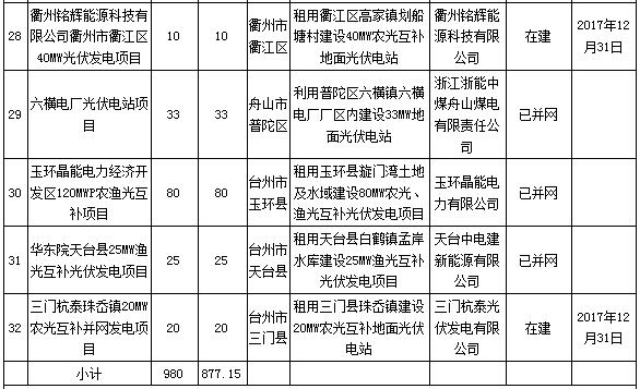 浙江省2016年普通地面光伏電站建設(shè)計劃調(diào)整和2017年度光伏指標分配方案