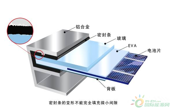 密封實(shí)際上是防止產(chǎn)生破壞作用的液體和氣體的滲入。在太陽電池組件裝配工藝過程中對膠粘劑的密封性要求是極其嚴(yán)格的,膠粘劑本身必須具備無氣孔汽泡,而且固化后的膠粘劑在結(jié)構(gòu)上應(yīng)當(dāng)是連續(xù)、均質(zhì)且致密的,具有阻隔介質(zhì)透過的性能。膠粘劑對材料的粘接界面性能對防止液體和氣體的滲透起到阻止作用,對密封可靠性也有直接影響。膠粘劑的密封性能是影響組件可靠性和穩(wěn)定性的一個(gè)極其關(guān)鍵指標(biāo)。