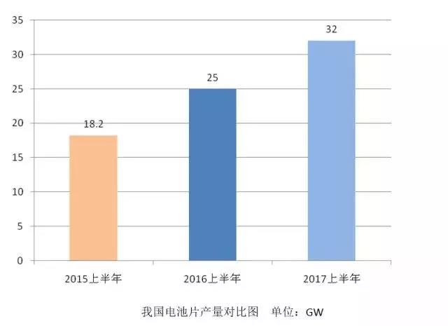 中國光伏行業(yè)協(xié)會最新數(shù)據(jù)顯示:2016年,我國電池片產(chǎn)量超過49GW,同比增長19.5%以上。2017年上半年我國電池產(chǎn)量約為32GW,同比增長約28%;產(chǎn)能利用率80%以上;單、多晶高效電池效率提升至21%和19%以上;行業(yè)毛利率在10%以上。
