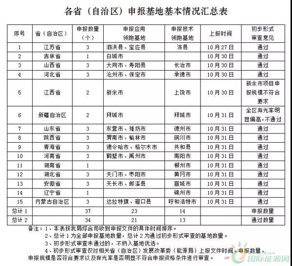 截至10月31日,共有15個(gè)省(自治區(qū))向國(guó)家能源局正式提交了共37個(gè)光伏發(fā)電領(lǐng)跑基地申報(bào)材料,其中包含23個(gè)應(yīng)用領(lǐng)跑基地和14個(gè)技術(shù)領(lǐng)跑基地;共有14個(gè)省(自治區(qū))的34個(gè)光伏發(fā)電領(lǐng)跑基地通過(guò)了初步形式審查,其中包含21個(gè)應(yīng)用領(lǐng)跑基地和13個(gè)技術(shù)領(lǐng)跑基地。為保障領(lǐng)跑基地優(yōu)選工作公平、公正、公開(kāi),現(xiàn)按類別對(duì)申報(bào)基地的基本情況予以公開(kāi)。
