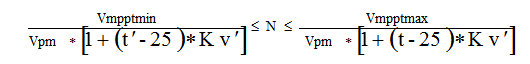如果以極端最低溫-10℃、極端最高溫40℃、265W多晶組件、開路電壓Voc=38.05V、工作電壓Vpm=31.02V以及開路電壓溫度系數(shù)-0.31%為例,根據(jù)上述公式可以得出組串長度范圍為:18-23塊/串。在此設(shè)計(jì)時(shí),建議盡量提高單組串的串聯(lián)數(shù)量,越接近允許范圍的上限(23塊)越好,這樣不僅可以獲得更高的發(fā)電量,還可以降低直流線纜成本和減少線損。
