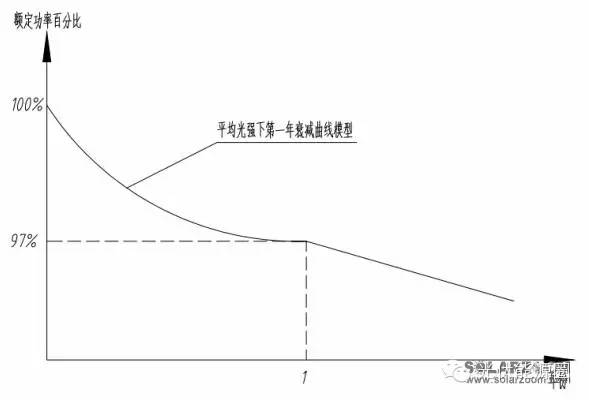對(duì)于晶硅組件,一般第一年最大衰減值為3%,此后每年為0.7%