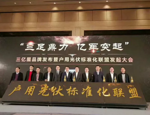 2017年11月26日下午,“三足鼎力•億軍突起”三億屋品牌發(fā)布暨戶用光伏標(biāo)準(zhǔn)化聯(lián)盟發(fā)起大會在上海浦東嘉里大酒店隆重舉行。同時,戶用光伏標(biāo)準(zhǔn)化聯(lián)盟發(fā)起儀式圓滿完成。來自光伏業(yè)內(nèi)主要企業(yè)及相關(guān)協(xié)會、金融機構(gòu)、媒體代表等數(shù)百人共同到場見證。