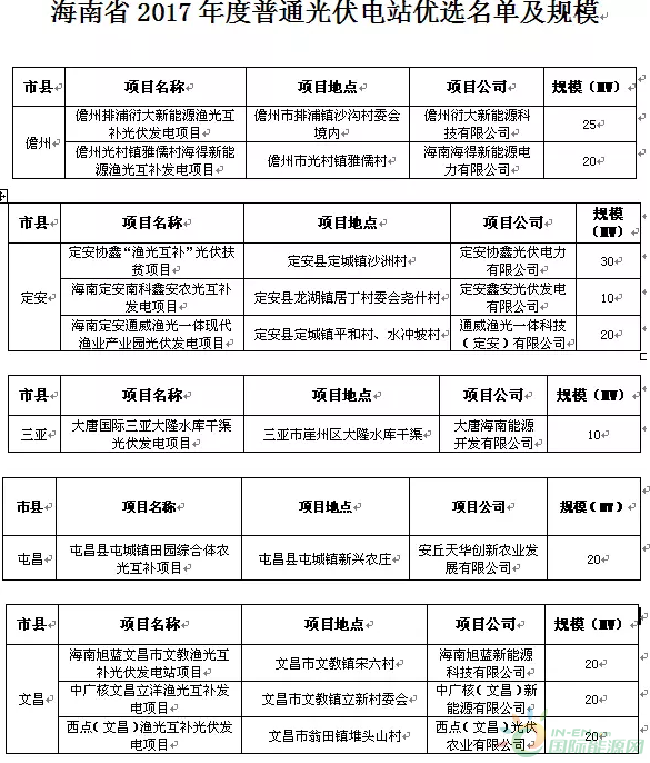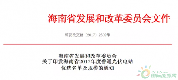 兩批575MW:L海南2017年度普通光伏電站優(yōu)選名單及規(guī)模的通知