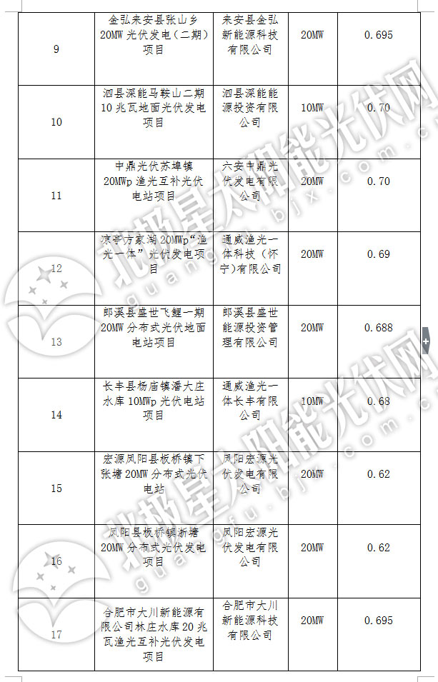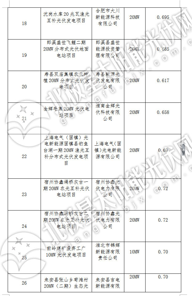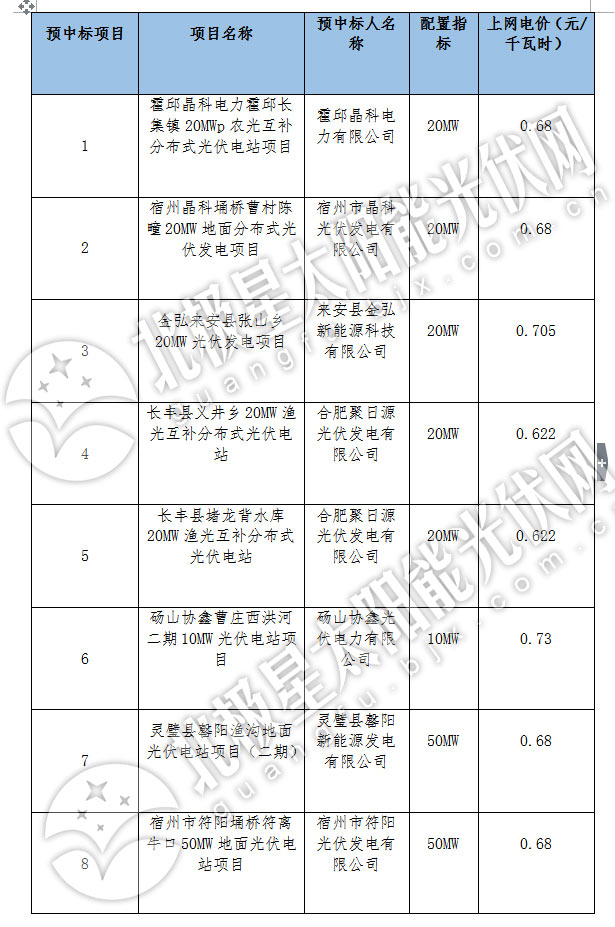 安徽省2017年集中式光伏電站新增建設(shè)規(guī)模配置項目中標公示