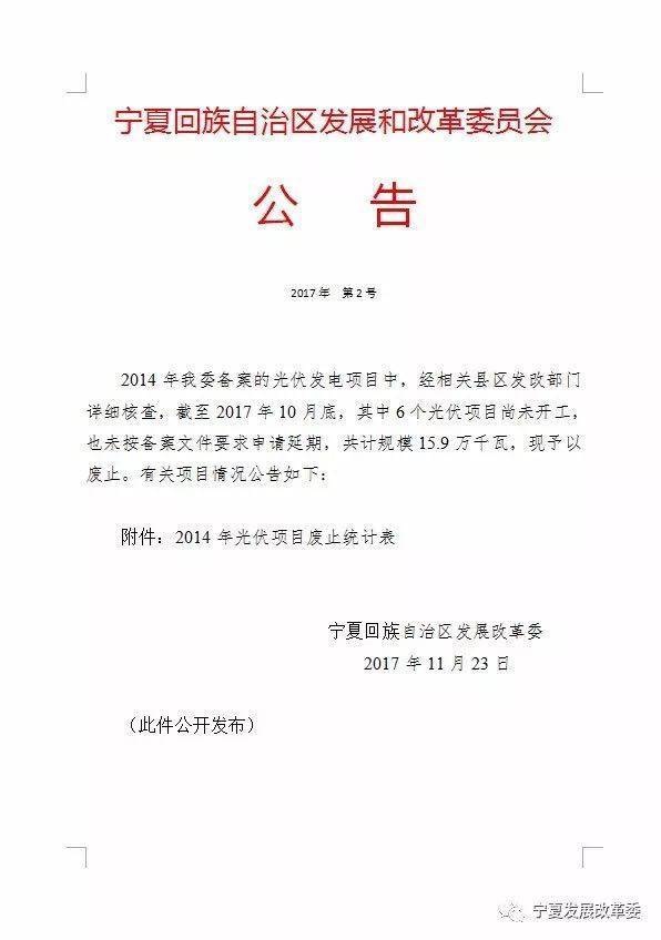 日前,寧夏發(fā)改委發(fā)布公告廢止6個截止10月底尚未開工的光伏項(xiàng)目,總規(guī)模共計15.9萬千瓦,上述項(xiàng)目都是于2014年備案的項(xiàng)目。