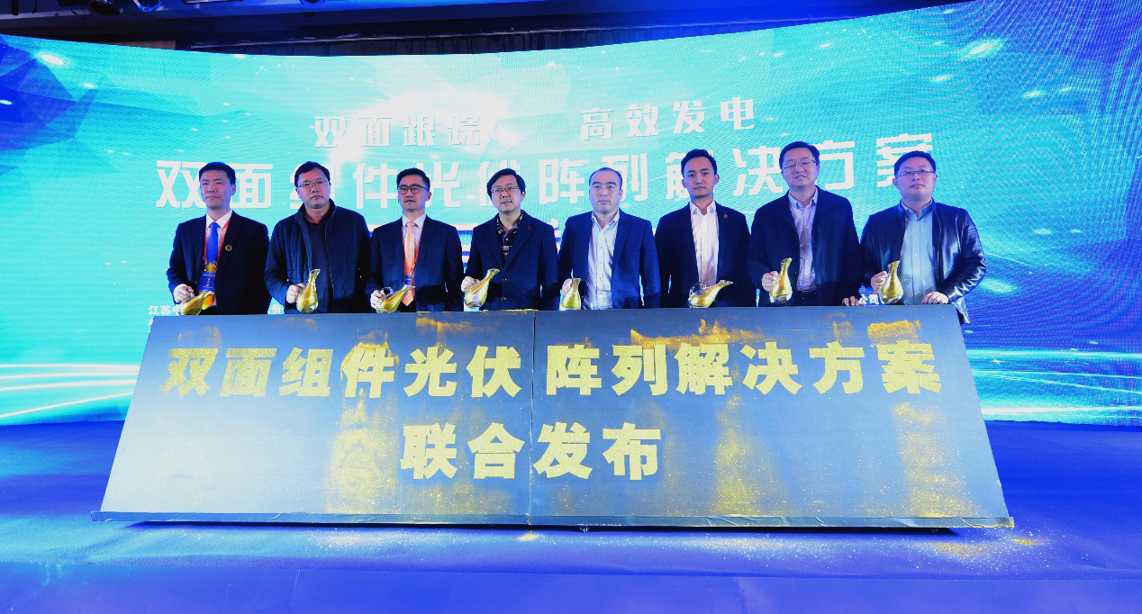 雙面組件的特點是正反面都可發(fā)電,最大輸出功率可達到標(biāo)稱功率的130%;而且在低光照和弱光照時轉(zhuǎn)換效率較高,這就要求必須針對性設(shè)計逆變器來匹配。陽光電源深刻洞察客戶需求進行研發(fā)創(chuàng)新,在近日威海舉行的第九屆國際光伏性能建模與監(jiān)測研討會(PVPMC)上,聯(lián)合中信博新能源、隆基樂葉等八家企業(yè)發(fā)布了雙面組件光伏陣列解決方案,并推出了業(yè)內(nèi)首款雙面組件專用逆變器——雙面逆變器SG80BF。