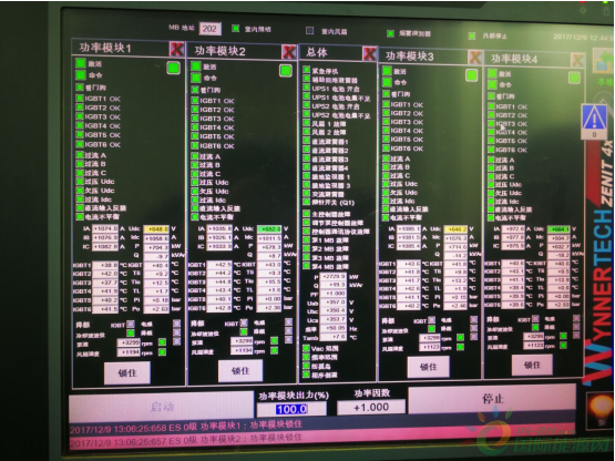 2017年12月5日16時許,全球首臺單機(jī)3 2MW液冷逆變器在甘肅敦煌60MW光伏電站成功并入西北電網(wǎng)。這臺創(chuàng)世界之最記錄的逆變器是由WYNNERTECH-酒泉潤科新能源有限公司提供。經(jīng)確認(rèn),并網(wǎng)過程中,ZENIT3 2MW逆變器各