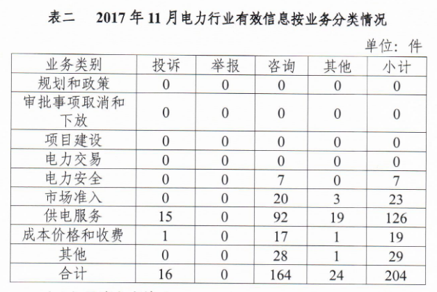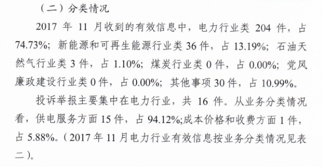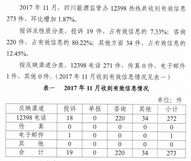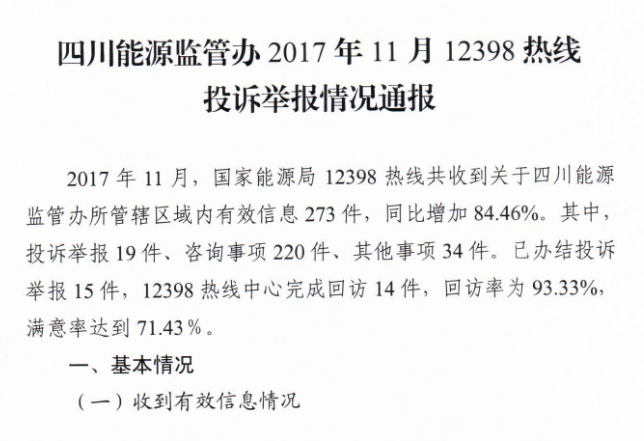 四川能源監(jiān)管辦2017年11月12398熱線投訴舉報情況通報