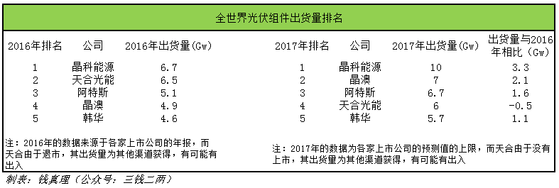 2016年,晶科以6.7Gw的出貨量成為全世界出貨量最大的光伏企業(yè),而2017年,晶科預(yù)計(jì)出貨量將達(dá)10Gw,連續(xù)第二年成為全球出貨量第一的光伏企業(yè),并且今年晶科將拉開(kāi)與第二名之間的出貨量差距,而這也讓從前光伏的“老大必死”的魔咒有希望被晶科所打破。