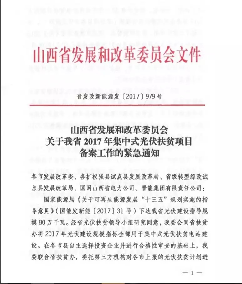 12月26日,山西省發(fā)改委印發(fā)了《關(guān)于我省2017年集中式光伏扶貧項(xiàng)目備案工作的緊急通知》,要求全省33個(gè)集中式光伏扶貧項(xiàng)目要在2017年底前完成項(xiàng)目備案。未按期開工、建設(shè)進(jìn)度緩慢、2018年6月30日未并網(wǎng)的項(xiàng)目,自
