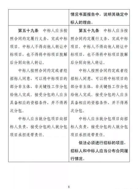 其中,最受大家關注的一點是:招標人可以直接確定中標人。該條修改前后對照如下: