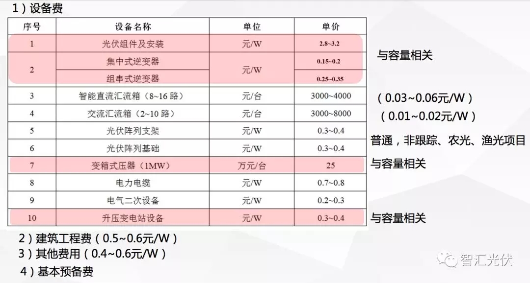 下面表格里列兩部分。標紅的部分是與容量相關(guān)的電站造價。沒有標紅的是與功率相關(guān)的面積相關(guān)的電站造價。