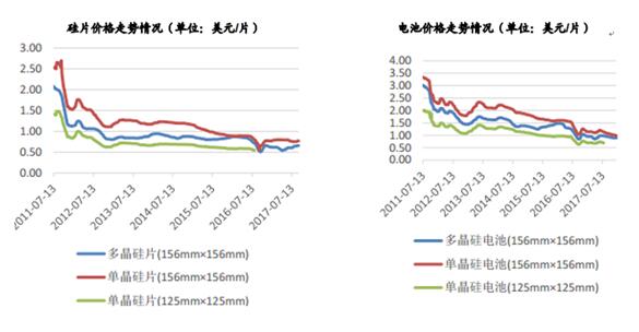 整體來看,光伏組件價格2018年仍大概率繼續(xù)下行。近年來光伏組件的價格一直都在降低,目前組件維持單晶緩跌、多晶暫時持穩(wěn)的局面,由于中國部分多晶硅廠商仍處于停產(chǎn)檢修并恢復(fù)產(chǎn)能的階段,短期內(nèi)的供應(yīng)短缺延遲了產(chǎn)品價格下跌。