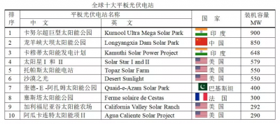 中國最大的光伏電站——龍羊峽水光互補(bǔ)光伏電站,裝機(jī)容量達(dá)850MWp,年發(fā)電量824GWh;但已經(jīng)被印度卡努爾超巨型太陽能公園(Kurnool Ultra Mega Solar Park)趕上了。