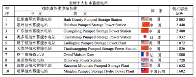 世界上第一座抽水蓄能電站是瑞士于1879年建成的勒頓抽水蓄能電站。當(dāng)今世界上最大的抽水蓄能電站是美國巴斯康蒂抽水蓄能電站,裝機(jī)容量達(dá)3003MW,其次為中國惠州抽水蓄能電站,裝機(jī)容量為2448 MW,廣東抽水蓄能水電站(Guangdong Pumped Storage Power Station),裝機(jī)容量為2400MW。