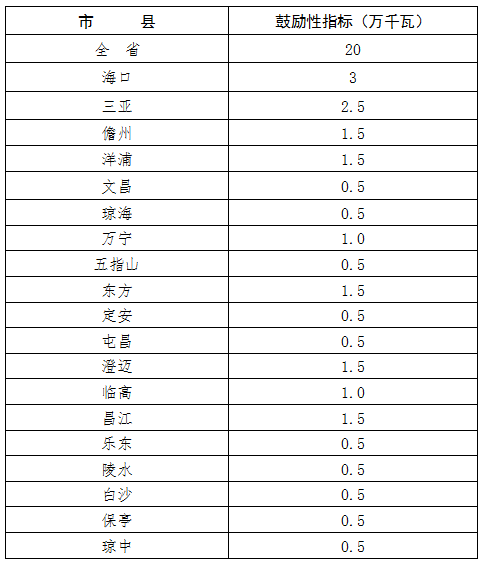 海南省“十三五”屋頂分布式光伏發(fā)電項目建設(shè)規(guī)模各市縣鼓勵性指標分解表