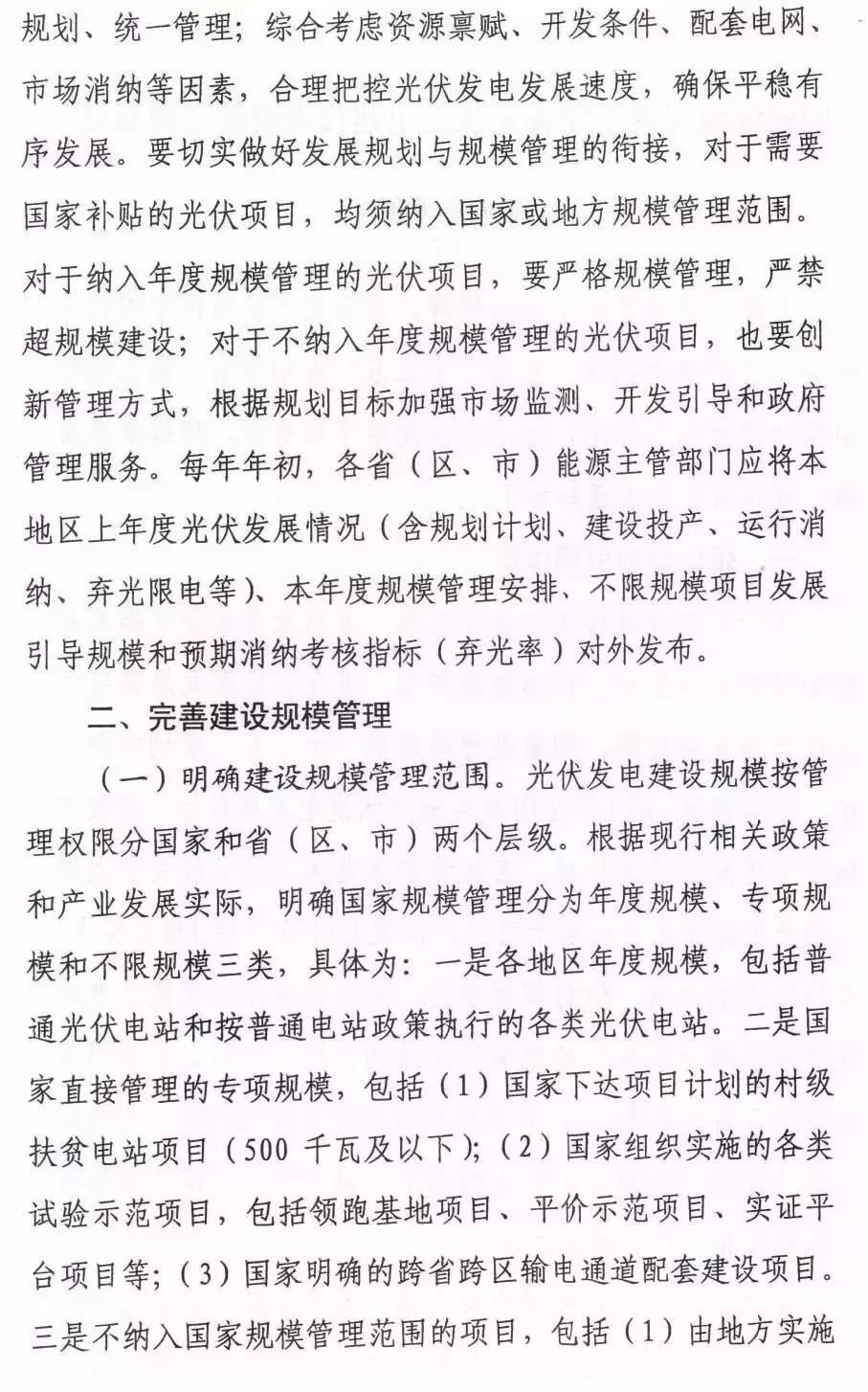 光伏發(fā)電建設(shè)規(guī)模按管理權(quán)限分國家和省(區(qū)、市)兩個層級。