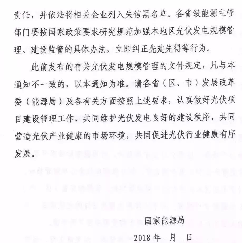 自2018年起,各地要嚴(yán)格禁止未批(備)先建和先建先得,需納入規(guī)模管理的光伏項(xiàng)目不得提前建設(shè),不得再出現(xiàn)新的先建先得項(xiàng)目,同時國家不再將其納入可再生能源基金補(bǔ)貼范圍。