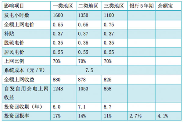 表2:2018年補貼下降后家用光伏系統(tǒng)收益分析表
