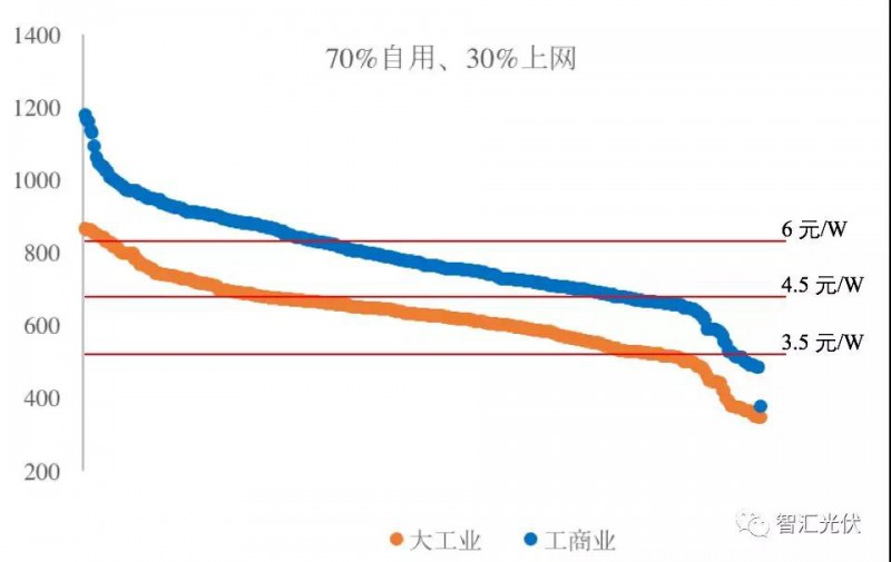 工商業(yè)企業(yè)自投的光伏項目,無論是100%自用還是70%自用、30%上網(wǎng),50%以上城市的光伏項目都能獲得8%以上的收益,具備投資價值;
