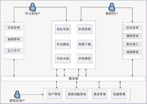 (3)自主學(xué)習功能:學(xué)習者可以根據(jù)個人需求進行學(xué)習,制定并查看個人的課程學(xué)習計劃及學(xué)習進度同時根據(jù)個人情況定制知識點或者測試題等,查看個人學(xué)習時間與學(xué)習次數(shù),瀏覽、查詢個人學(xué)習紀錄,如參加過的討論、提出的問題及答疑情況及作業(yè)提交情況和作業(yè)成績等。